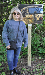 June 1, 2024, Part 1: We met at 10 AM in the Ontario County Fairgrounds parking area and walked west along Ontario Pathways to discover the first installation of Ontario County Arts Council's Ontario Art Trails.